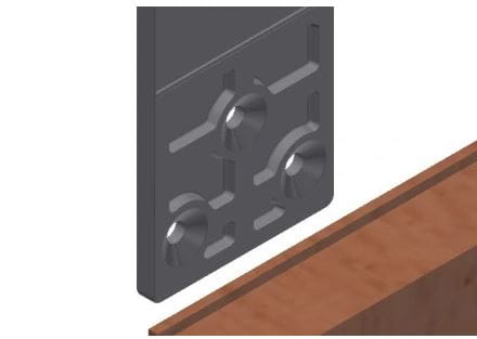 1. Podkładkę od strony wystającej wypustki, dosuń do krawędzi deski