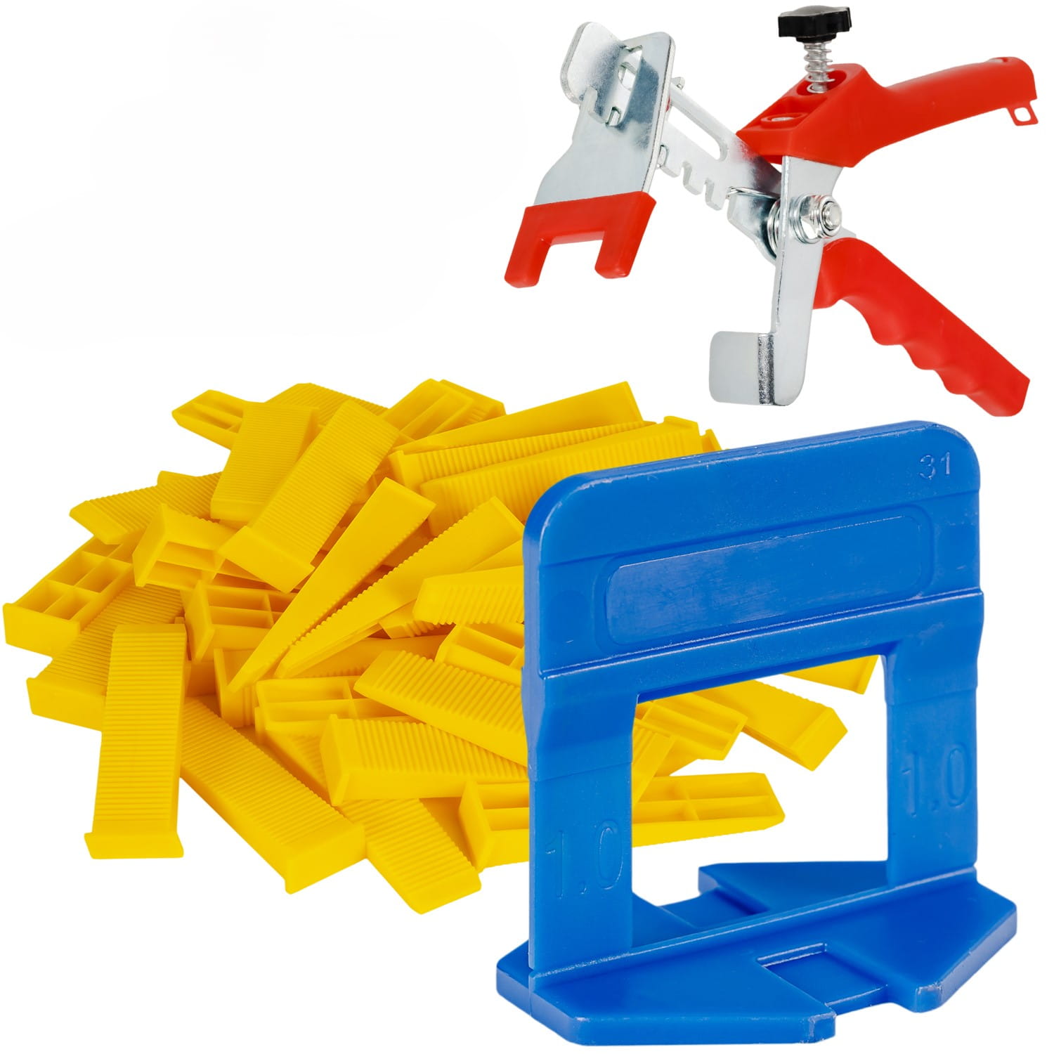 Aukcja dotyczy: System Poziomowania Płytek DUO Tevotech zestaw 500szt. 1,0mm+ 100 klinów + zaciskacz